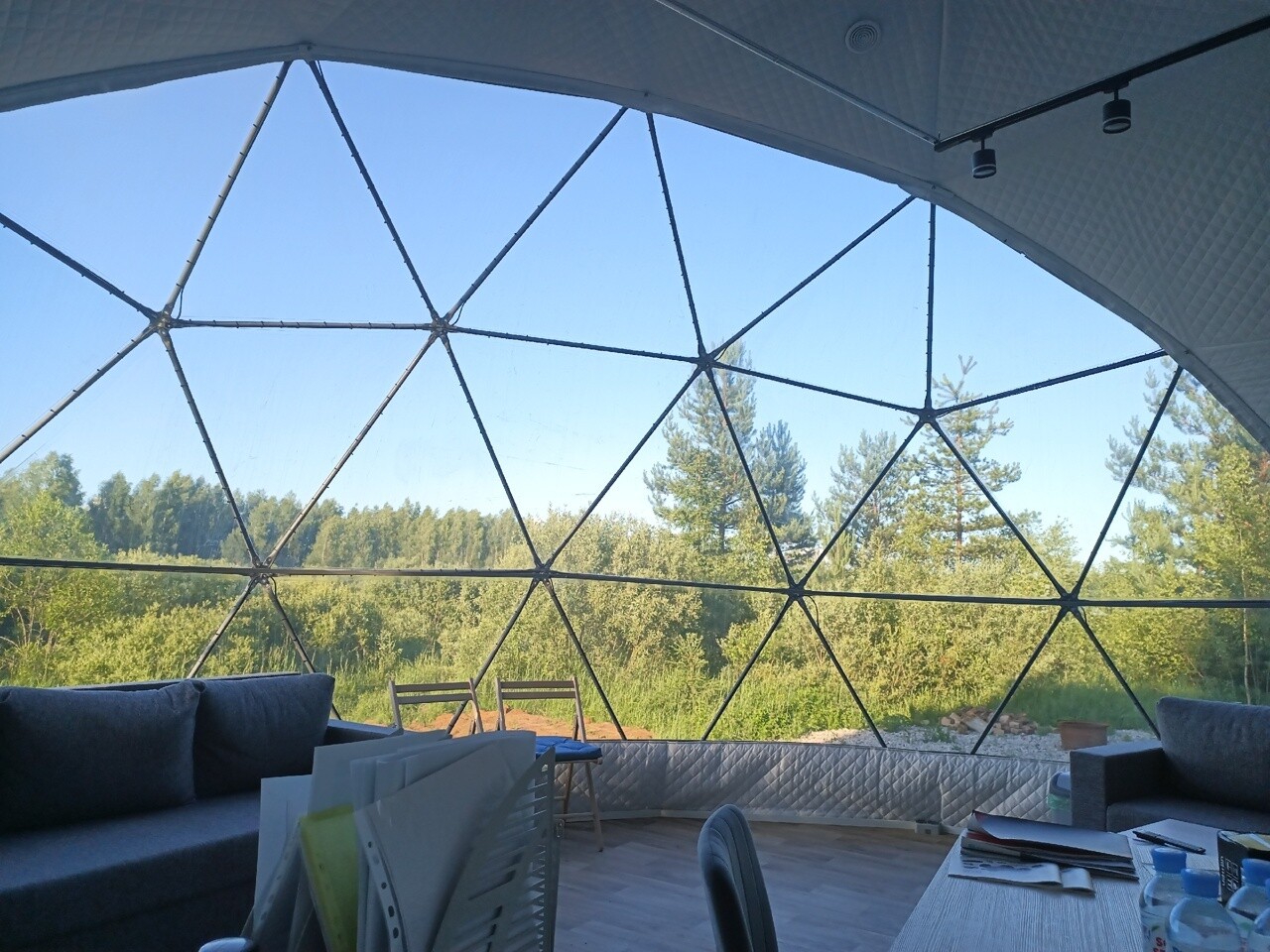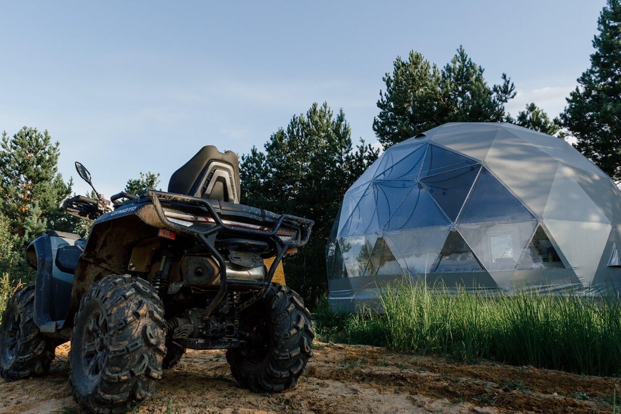 На территории клуба обустроена гостевая зона в панорамном куполе, где можно отдохнуть после прогулки, выпить согревающий чай или кофе, поиграть в приставку и настольные игры. Также есть волейбольная площадка, а если вы хотите пожарить шашлыки на природе – к вашим услугам зона барбекю.