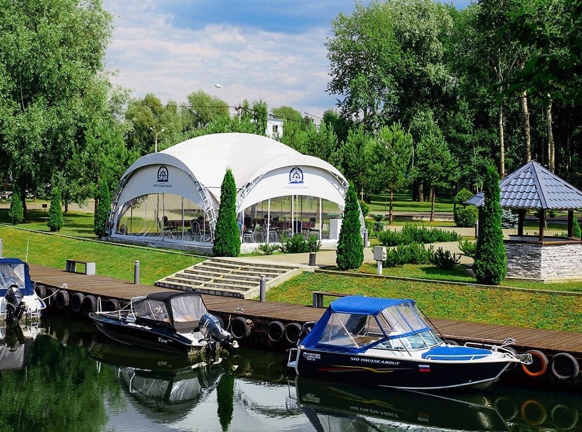 Клуб на стрелке рек Москвы и Быковки имеет собственный четырехсотметровый пирс для стоянки катеров и яхт длиной от трех до 20 метров с осадкой до трех метров. Одновременно здесь могут пришвартоваться до ста лодок, еще столько же можно разместить в ангарах на суше.