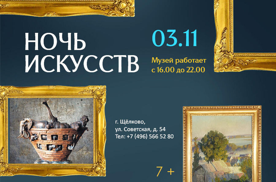 Щелковский музей также подготовил для жителей и гостей города интересную программу на «Ночь искусств». В 16:00 начнется сборная интерактивная экскурсия по выставке живописи художника Антона Антонова-Менска. В 17:00 состоится открытие выставки скульптуры члена-корреспондента российской Академии художеств Сергея Сережина. В рамках открытия проведут авторскую экскурсию. В 20:30 – сборная интерактивная экскурсия по выставке живописи художника Ольги Бересневой «Следуя за мечтой». Эти мероприятия можно посетить бесплатно.