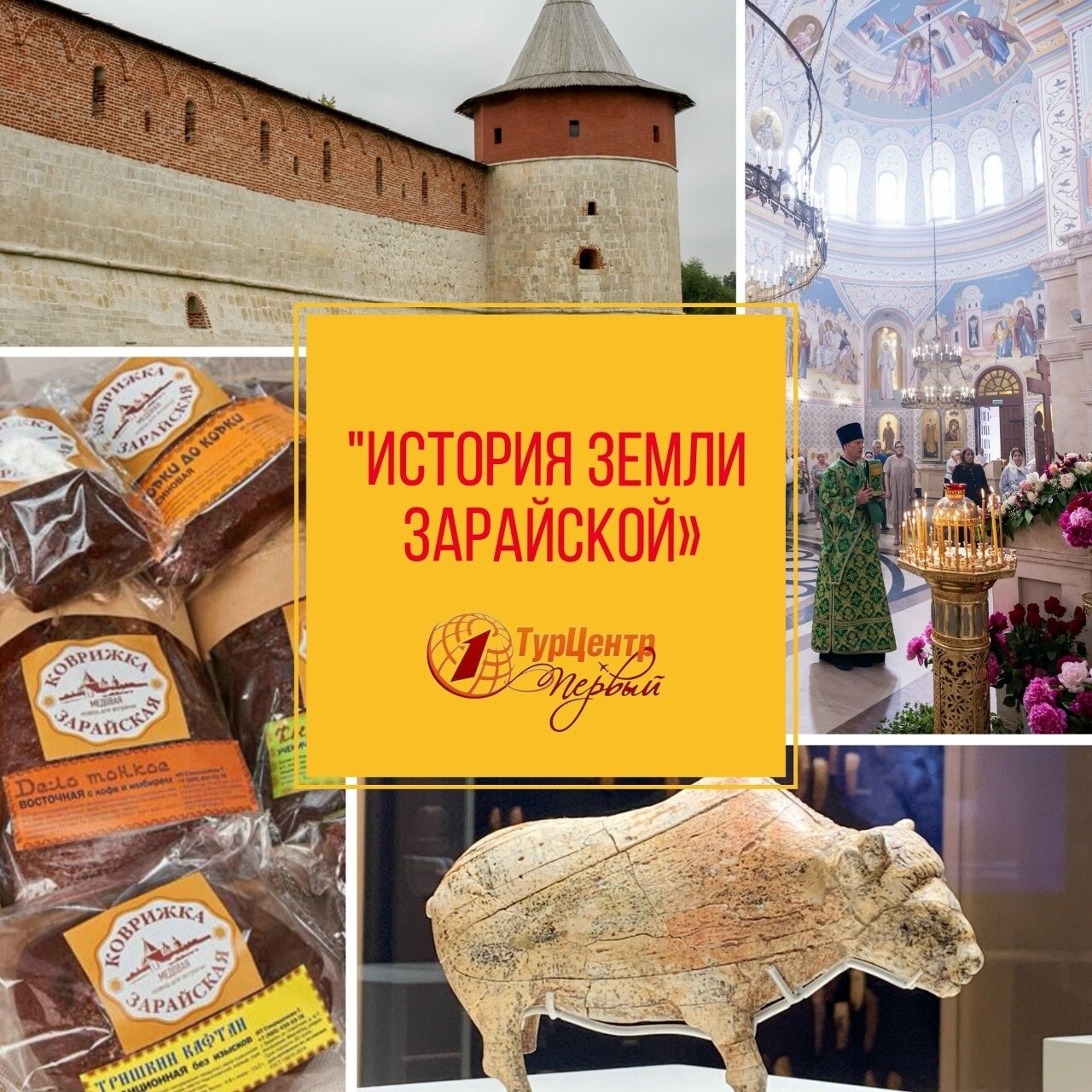 Экскурсия в музей Зарайского Кремля "Присутственные места", который еще называют музеем Зарайского бизона. Вы увидите уникальную археологическую редкость, найденную при раскопках в Зарайске и вызвашую ажиотаж в мировом научном сообществе. Это великолепная, искусная статуэтка бизона, вырезанная доисторическим мастером из бивня мамонта. Возраст статуэтки около 23 000 лет! Музейное собрание также впечатлит подлиниками полотен Репина, Шишкина, Бакста и западно-европейских художников, а также коллекциями антикварной мебели, старинного стекла и бронзы, изысканного японского и китайского фарфора.